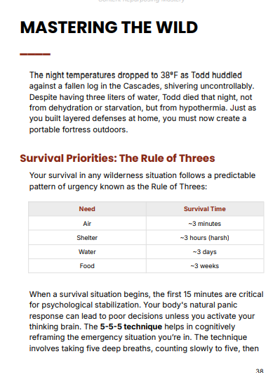 The Survivor’s Mindset – Why survival is 80% psychology and how to train your brain to stay calm, decisive, and resilient under pressure.
